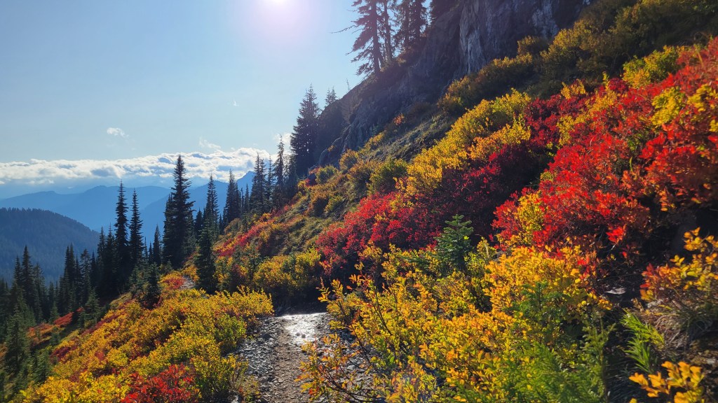 On fall evenings, it’s possible to have long stretches of the trail almost entirely to yourself, which is rare so close to Rainier.
