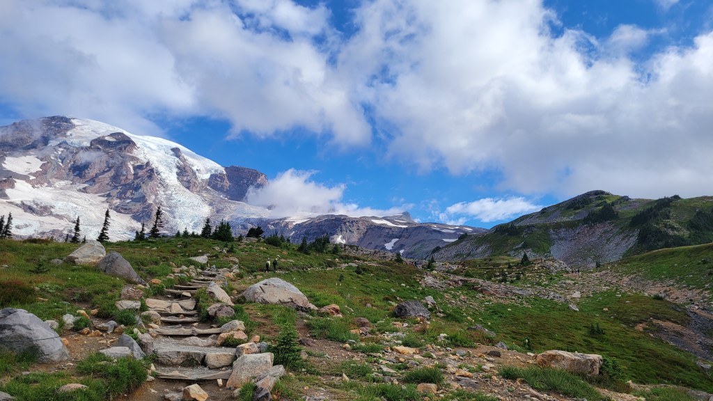 Even in summer, conditions can be cold, windy, and intense higher up. Mount Rainier’s summit is snow-covered year-round, and you are gaining serious elevation on this hike.