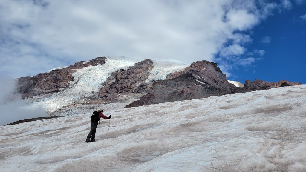 It is grueling, highly weather-dependent, and season-dependent. It sits right on the edge of mountaineering — without quite crossing over. You don’t need technical mountaineering gear or formal mountaineering training to reach Camp Muir, but this is still a hard, advanced hike that is not for everyone.