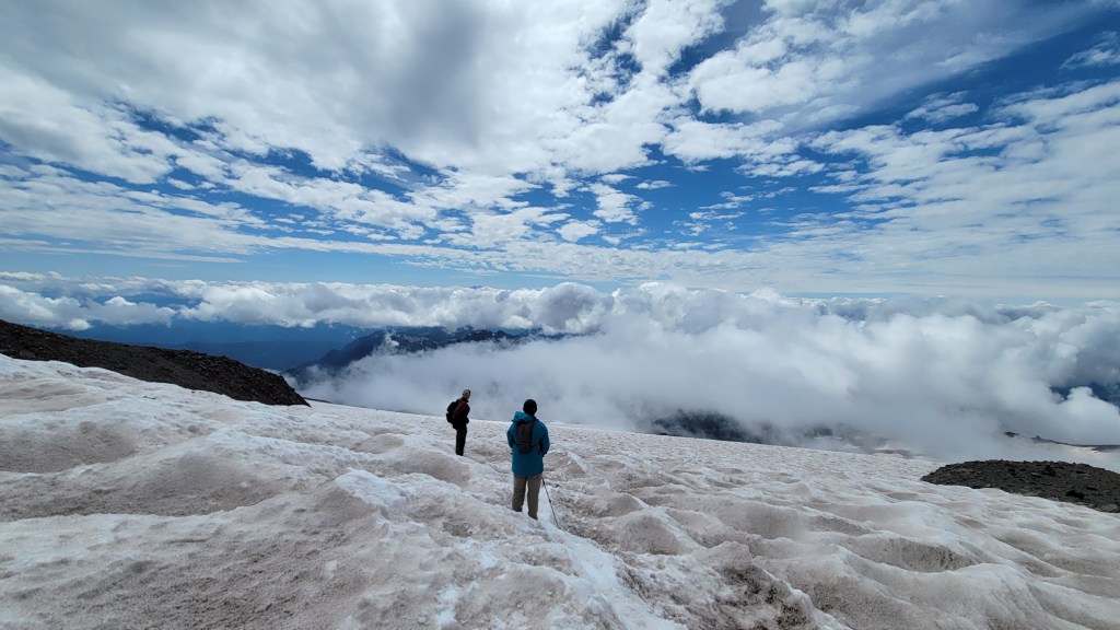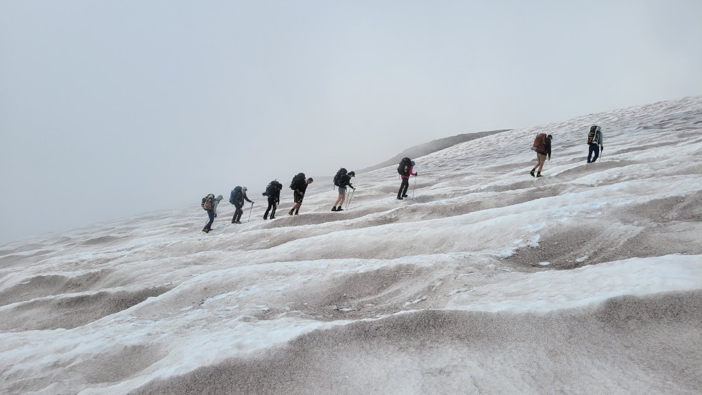 The final climb through the snowfields can become a slog — even in good conditions. It is physically demanding and mentally grinding, but also deeply otherworldly.
