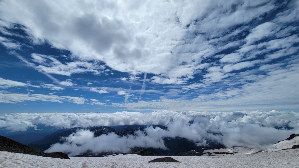 That said, Mount Rainier is its own microclimate. Clouds frequently play hide-and-seek with the peak. Intermittent clouds are not a deal-breaker.
