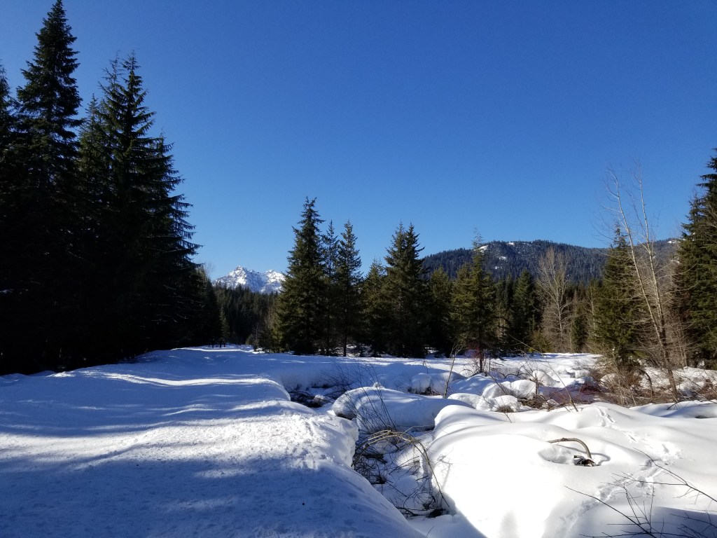 This is one of the best places near I-90 to introduce someone to snow hiking or snowshoeing without worrying about steep climbs, avalanche terrain, or complicated navigation.