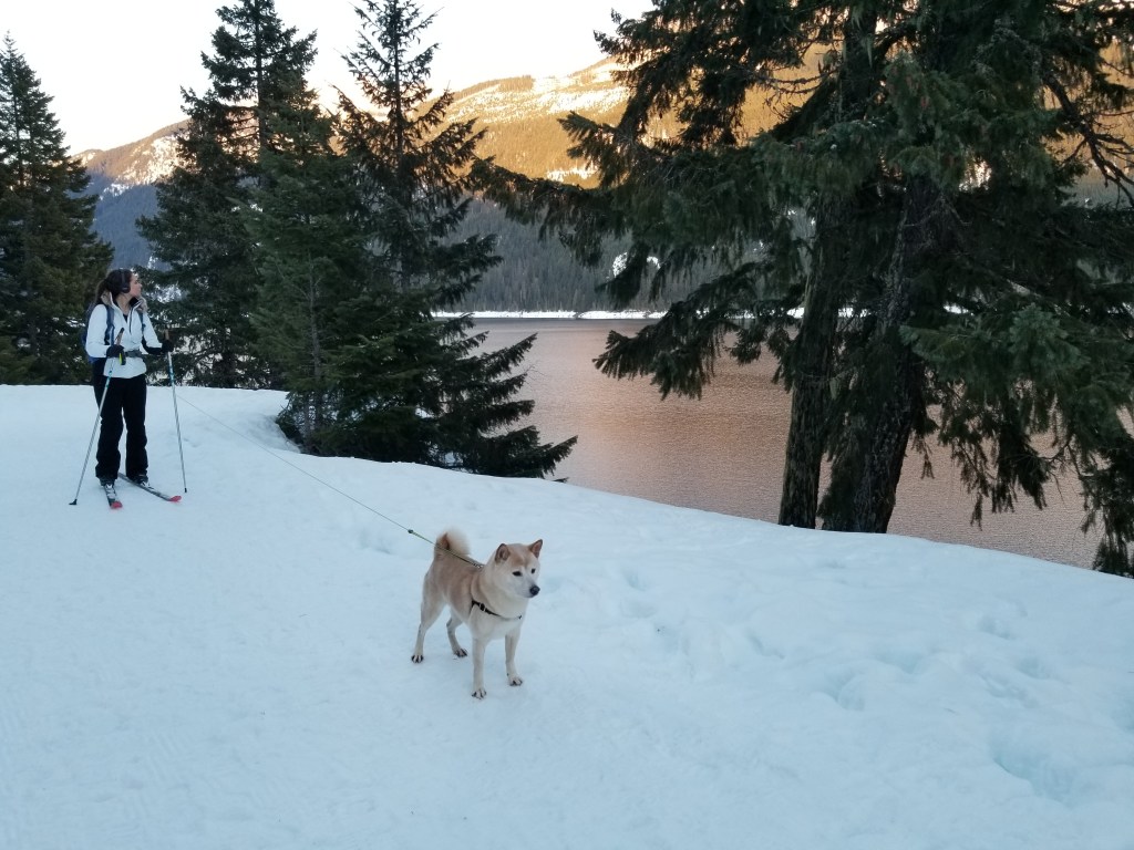 Because the route is almost entirely flat, this is a beginner-friendly XC ski outing as well — just avoid skiing the shoreline loop itself.