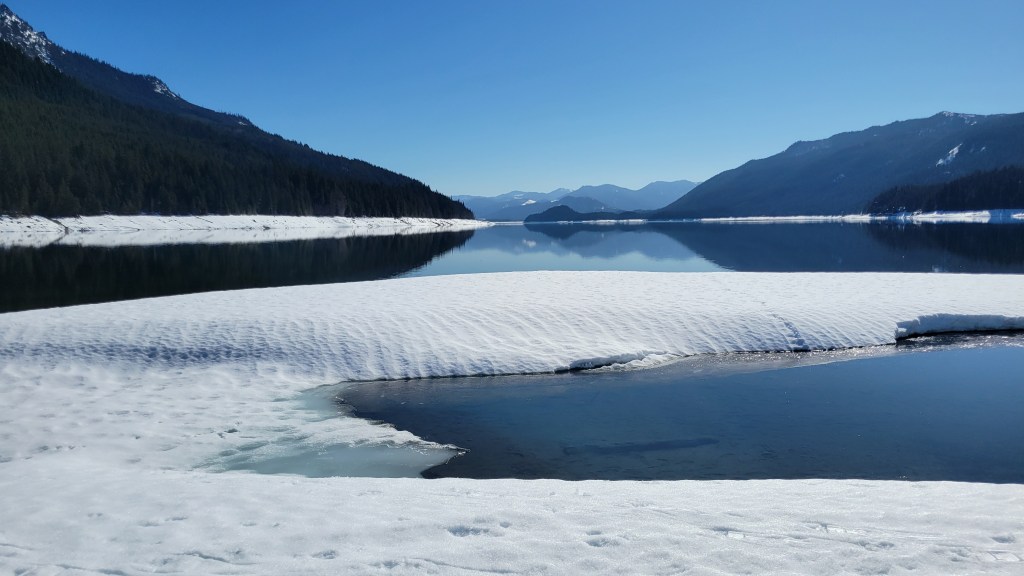 - On clear days, the combination of snow-covered shoreline + open water is striking and surprisingly rare.